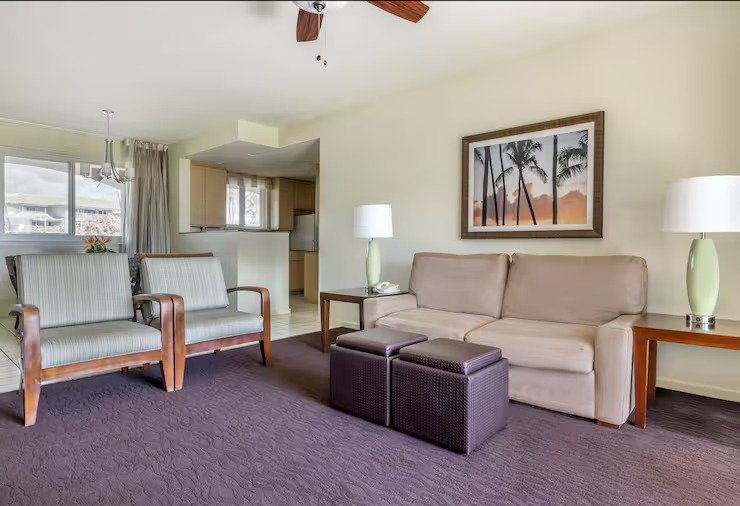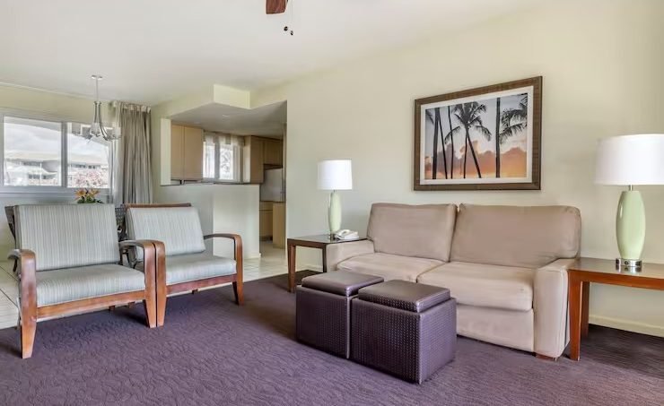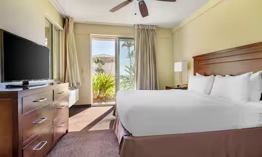 The Point at Poipu features lovely one-bedroom and two-bedroom timeshare accommodations with all the comforts and conveniences of home. Master bedrooms feature a king-size bed and large bathroom with separate soaking tub and shower stall. Kitchens are fully equipped with granite counter tops, range and oven, microwave, refrigerator, dishwasher, utensils, cookware, dishware, and dining area. Living rooms have complete entertainment centers, and private lanais open to the resort’s lush gardens or the majestic span of the Pacific Ocean.