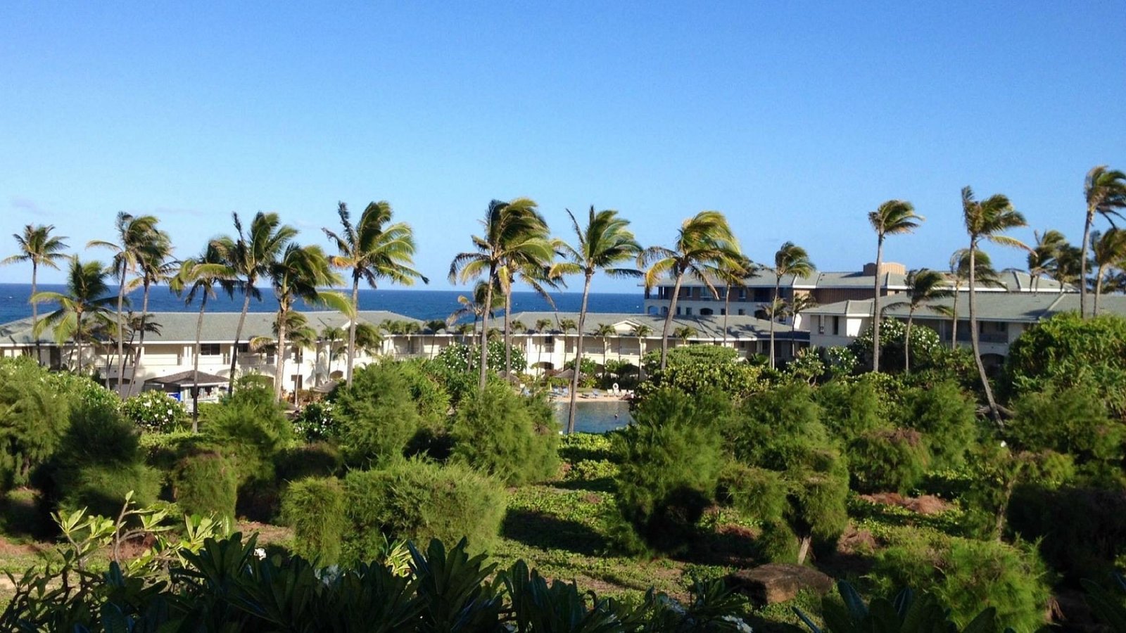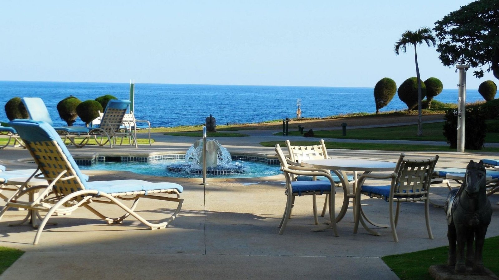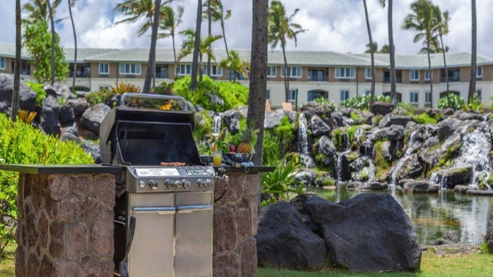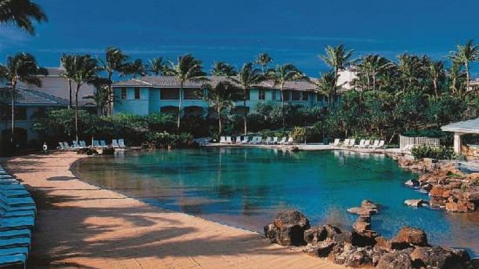 Flowing waterfalls, a crystal clear Koi pond, and hundreds of tropical plants make The Point at Poipu appear the stuff of the dreams. Nestled in over twenty acres of lush tropical gardens overlooking the Keoneloa Bay, and buildings no taller than a coconut tree, it is hard to believe this island paradise is actually a resort! In the center of The Point at Poipu is the tranquil lagoon-style swimming pool with its own sandy beach and whirlpool spas. In a more remote nook of the resort is an adults-only spa for quiet time away from the kids. The resort also offers a complete fitness center, pool-side grill and bar, pool hut for all your pool and beach accessories, and barbecue areas.