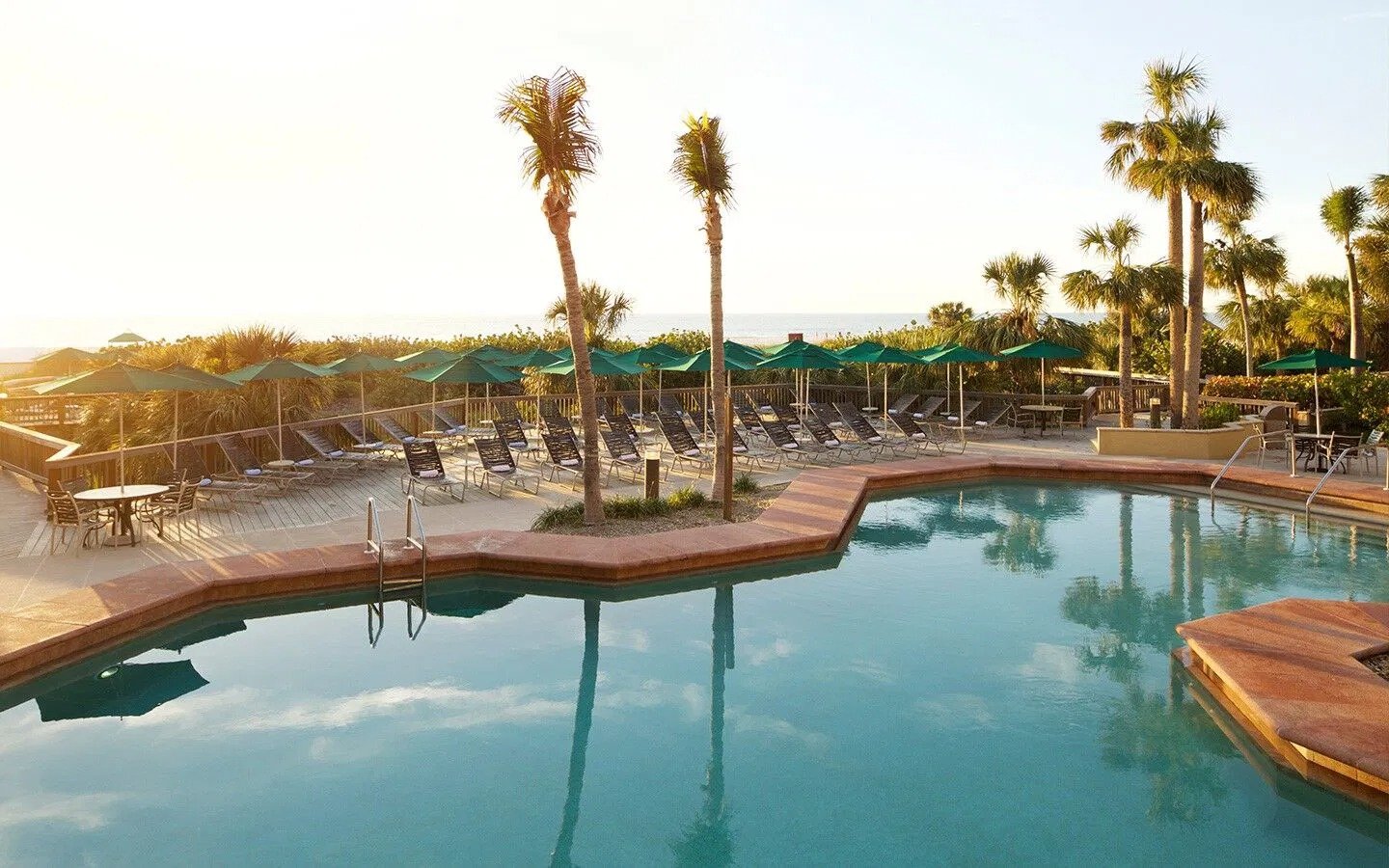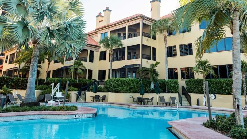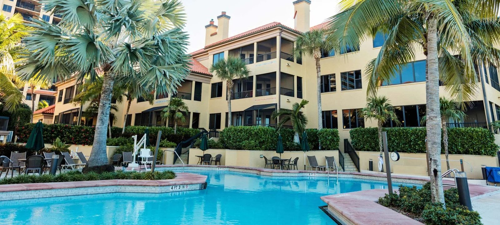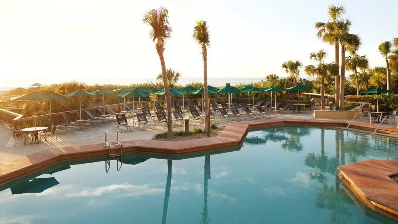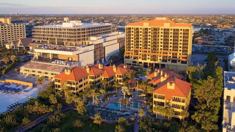 Eagle’s Nest Beach Resort indulges guests in a Marco Island experience that blends exhilarating outdoor adventure with the fine art of relaxation. With its clay-tiled roofs, lush tropical grounds and stunning gulf views, this welcoming beachfront retreat provides the distinctive ambience of a Mediterranean village. The centerpiece of Eagle’s Nest’s its beautiful pool area, where palm trees and lush tropical plantings accent the courtyard’s ambiance. Flanked by two whirlpool spas, the heated swimming pool’s unique 1700 square foot design features two shallow ends and plenty of private spots for guests. Two lighted tennis courts, racquetball room, fitness center, pool bar, video arcade, pool, ping-pong and supervised recreation programs provide guests with a variety of options for vacation entertainment.