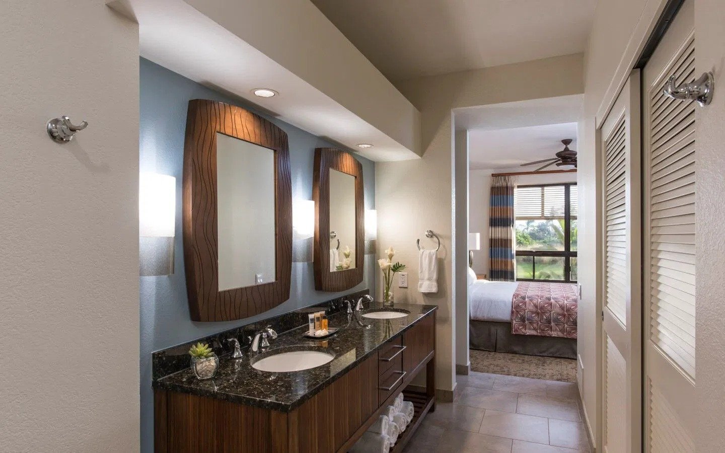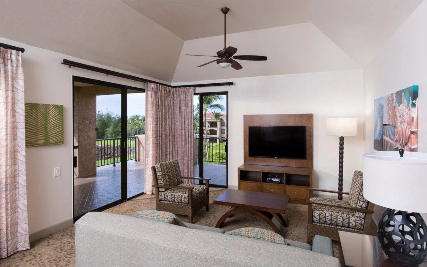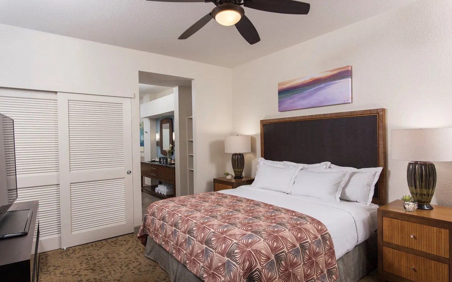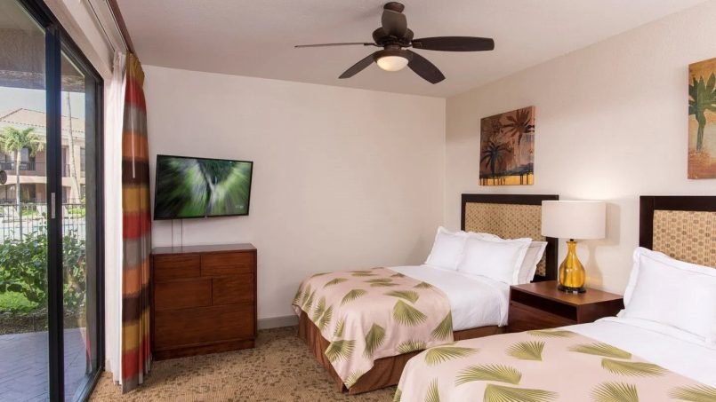Offering spacious one-bedroom and two-bedroom timeshare suites, The Bay Club at Waikoloa Beach is perfect for families or vacationing with friends. One- bedroom units sleep four with a king bed in the master bedroom and a queen sleeper sofa in the living area. Two-bedroom units sleep six with a king bed in the master bedroom, two full-size beds in the guest bedroom, and a queen sleeper sofa. All units area equipped with a full-size kitchen, washer/dryer, air conditioning, and a TV in the living area and bedrooms.