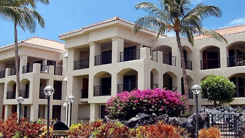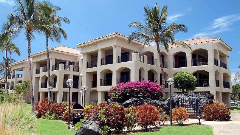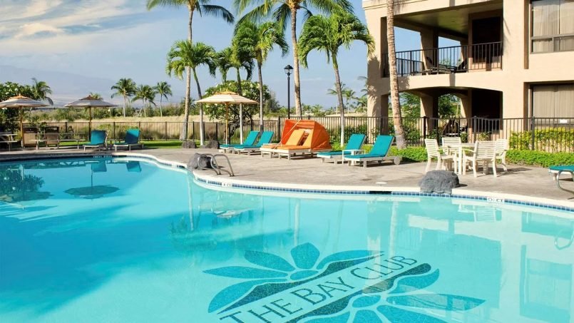 The Bay Club at Waikoloa Beach is a quiet resort nestled among golf courses, lava fields and ancient Hawaiian petroglyphs in the heart of Waikoloa Village. This magnificent resort features two swimming pools, a children’s pool, a children’s play area, exercise facility, and tennis courts. If you want a snack and don’t feel like cooking, head to the 3 Frog’s Café for a quick bite. The resort also offers a free shuttle to the beach, golf courses, King’s Shops, and the Hilton Waikoloa Village, home of Dolphin Quest.