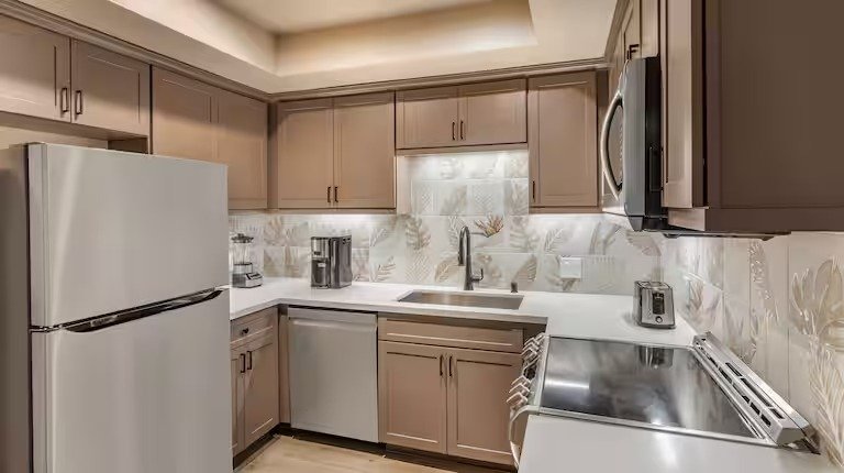 The Kohala Suites’ spacious two-bedroom villas are the perfect retreat after a long day exploring Hawaii. Modern comfort and a stylish tropical flair come together to provide an unforgettable experience that embodies Hawaii’s easygoing vibe. You’ll have all the room you need to cook with a full-equipped kitchen and a separate dining area in which to serve your creations. Living areas are furnished with a TV, DVD player and CD players with access to a private lanai. Turn in for the night in the gorgeous master bedroom, complete with a king bed, cable TV and a jetted tub.