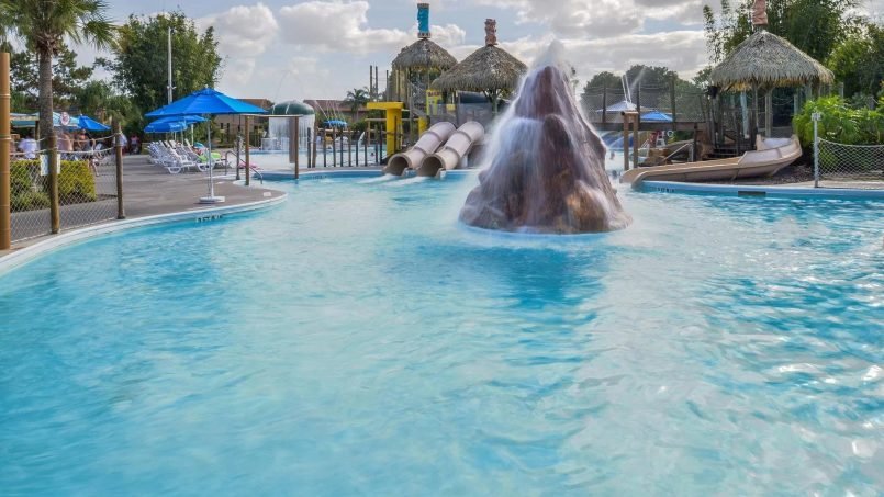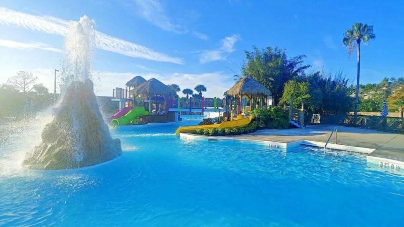Hilton Vacation Club Aqua Sol Orlando West encompasses 64 acres of lush landscape, a Polynesian-themed hideaway located in Orlando! During your stay, stroll around the grounds and soak up the tropical beauty. Join your children frolicking around the on-site water activity adventure complete with waterslides and a water volcano or play mini golf.