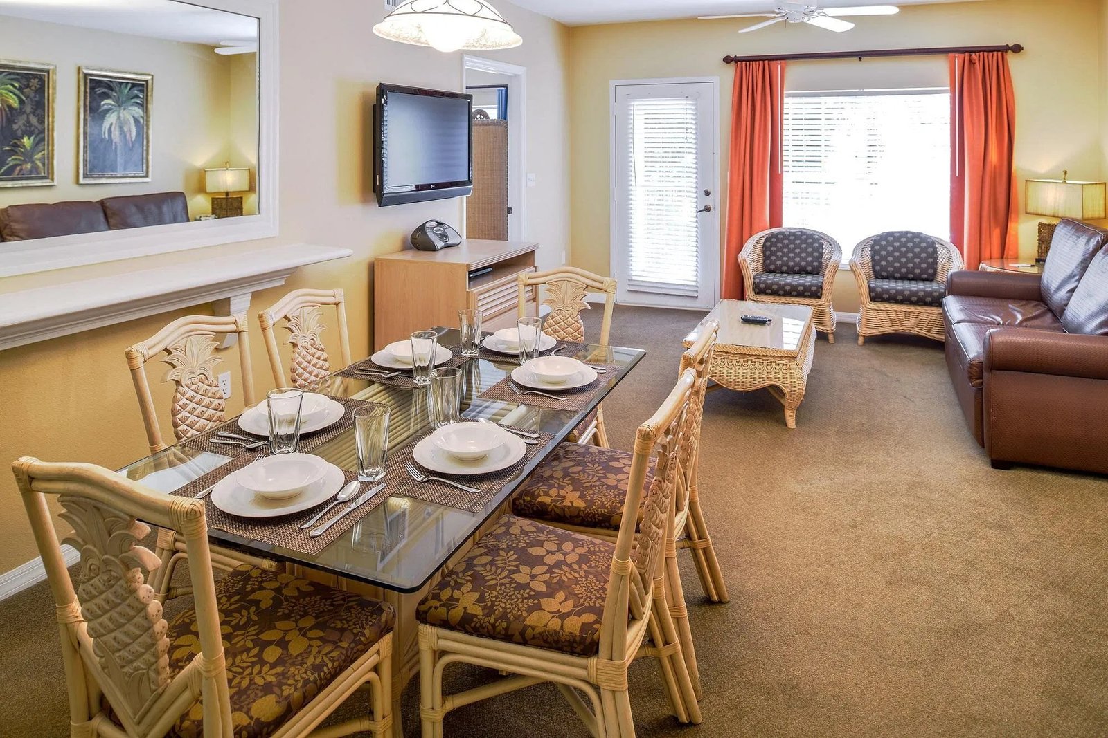 At Aqua Sol, you’ll enjoy two bedroom-two bathroom townhouse villas as well as one-bedroom, two-bedroom, and three-bedroom villas, all equipped with a living room, dining area, full kitchens and washer/dryer. The two-bedroom townhouse villa sleeps eight and offers two queen size beds and two sofa beds. The one-bedroom villa sleeps four and offers a queen size bed and sleeper sofa. The two-bedroom villa sleeps six and offers a king-size bed, two full or twin beds and a sleeper sofa. The three-bedroom villa sleeps ten and offers one king-size bed, one queen bed, two full beds, and two sleeper sofas.
