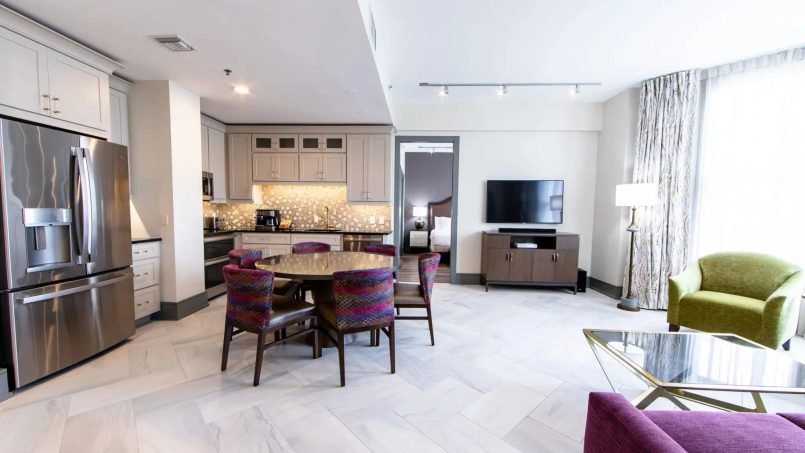 Holiday Inn Club Vacations New Orleans Resort’s one-bedroom and two-bedroom villas are bedecked with rich tones and sophisticated furnishings that channel the vibrance and spirit of the surrounding area. Look forward to kicking back and relaxing in your villa outfitted with a full kitchen boasting stainless steel appliances, separate living area, dining area, blackout shades, flat-screen TV, radio and sound system and more!