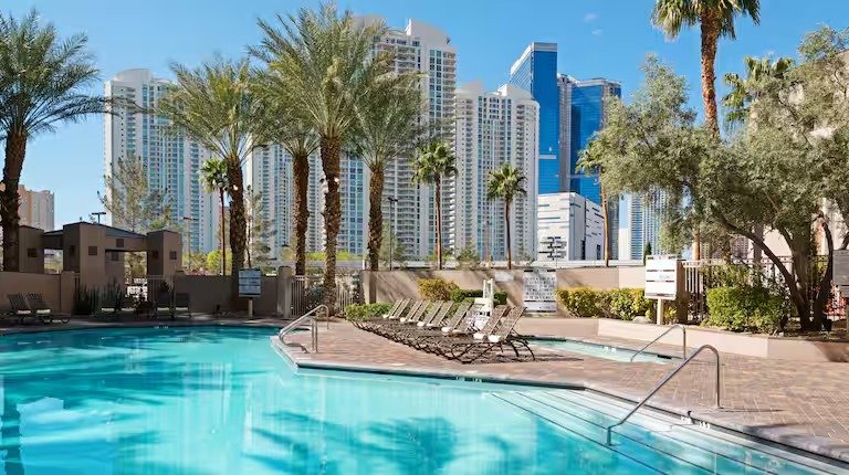 Step out the door of your Hilton Grand Vacations timeshare suite at the Las Vegas Hilton and immerse yourself in the lights and life of Vegas. Situated behind the Las Vegas Hilton hotel and casino, the Hilton Grand Vacations on Paradise is steps from all the dazzling entertainment, scrumptious delicacies, and gaming Vegas has to offer.