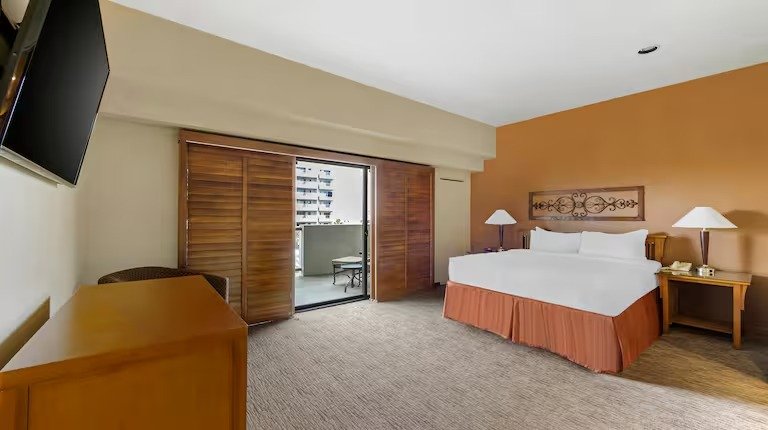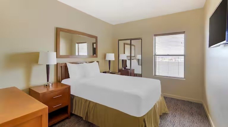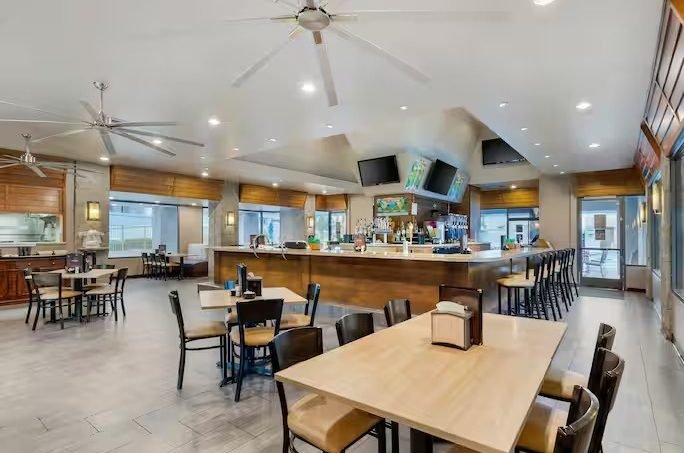 Suites range from one- and two-bedroom units to penthouse suites, all with full kitchens, private patios or balconies, multiple TVs, and enough space for families or groups. Deluxe layouts include two bathrooms, comfortable living/dining areas, and thoughtful amenities like coffee/tea makers, ceiling fans, and AC. Many units are outfitted for accessibility, and the large master bathrooms – even with dual vanities and jetted tubs – add a touch of luxury to your stay.