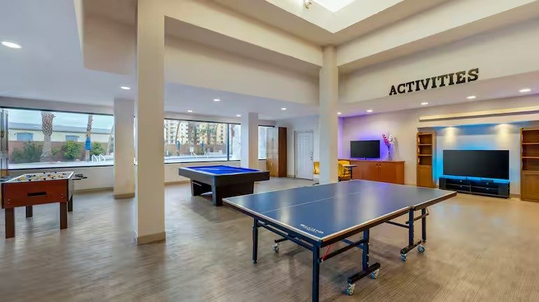Hilton Vacation Club Cancun Resort Las Vegas offers a playful escape just south of the Strip, combining family fun with spacious suite-style comfort. The resort features a striking Mayan pyramid waterfall, four water slides, two outdoor heated pools, hot tubs, and plenty of relaxing poolside space with loungers and hammocks. Guests can also unwind in the jacuzzi, stay fit in the gym, enjoy the arcade/game room, or fire up the barbecue grills for casual outdoor meals. Whether you’re here for splashy pool days or festive evenings, this resort blends energy and relaxation.