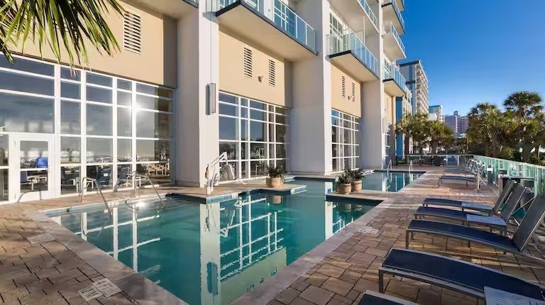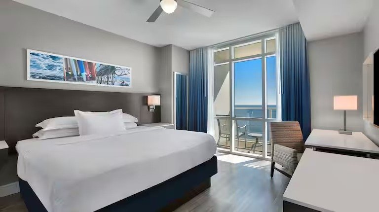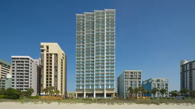Welcome to Ocean 22 by Hilton Grand Vacations! Boasting a beautiful beachfront setting, the hotel is within easy access to all of Myrtle Beach’s greatest attractions. Cool off with a refreshing dip in the outdoor swimming pool, or unwind in the whirlpool hot tub. A fitness center decked out with Precor equipment awaits your workout, while the kids can enjoy games in the Activity Club. Pick up coffee, fresh pastries, light snacks and crisp salads from the deli. Looking to relax with a drink? Sip cocktails and soak up the sunshine at pool bar, or relax with a glass of wine in the lounge.