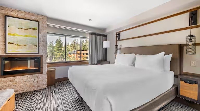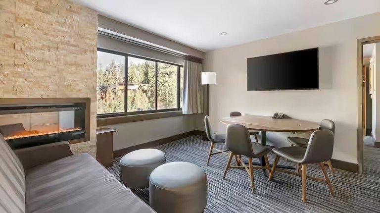 Hilton Vacation Club Tahoe Seasons Lake Tahoe offers breathtaking views of snowcapped peaks, sprawling pine forests and shimmering blue waters, all from its perch just a mile outside Lake Tahoe. The Resort offers everything needed to kick off your vacation the right away – enjoy an on-site pub, restaurant for breakfast, room service, outdoor swimming pool, barbecue grills, a tennis court, shuffle board courts, gift and sundry shop, seasonal ski shop, and ski and golf storage.