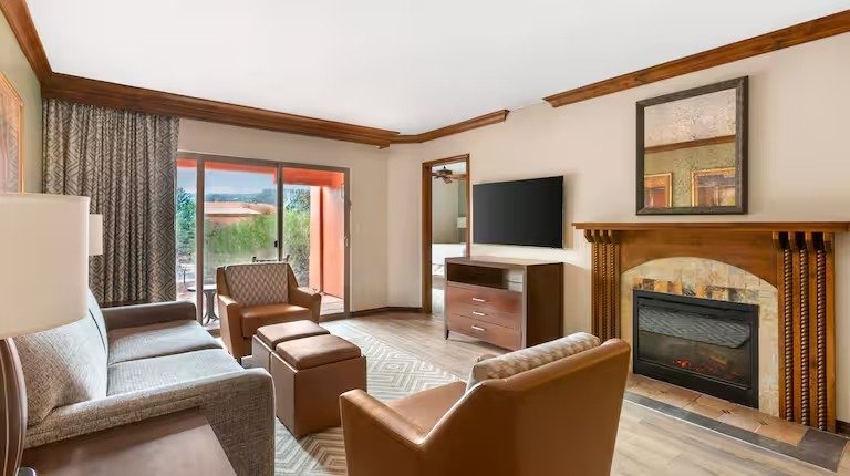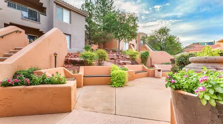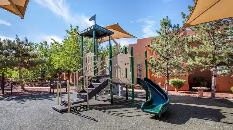 Sedona Summit lies nestled on the upper plateau of Sedona, boasting unrivaled views of the stunning mountain scenery. Sedona Summit is a retreat in every sense of the word – whether just relaxing in the two-level pool or hot tubs or strolling the resort’s winding scenic pathways, you’ll see why Sedona is renowned as the perfect place to revitalize. The resort also boasts a fitness center, clubhouse, playground, yoga facilities, game room and gas grills. Sedona Summit offers a range of suite sizes, ranging from compact studios to the magnificent three-bedroom Sunset Suite. Studios include the essentials – a queen size bed, pull-out sofa, full bathroom, partial kitchen, cable TV and DVD player and Wi-Fi available at an extra cost. Upgrade to a one, two or three-bedroom villa and enjoy additions such as a full kitchen and more extensive bathroom with a whirlpool bathtub. No matter which size you choose, each unit is outfitted with bright colors and rich woods reminiscent of Sedona’s unique spirit. Sedona truly has something for everyone. Those wanting to see the sights can embark on tours of the Red Rock canyons by Jeep or hot-air balloon rides, or tours of the Grand Canyon or the Hopi Indian Reservation. Adventurous spirits should check out the local state and national parks and the Red Rock country of Oak Creek Canyon. Golfers will surely enjoy the thrill of their sport against the majestic backdrop. And even those looking for a more relaxed experience can peruse the variety of shops and restaurants in the area.