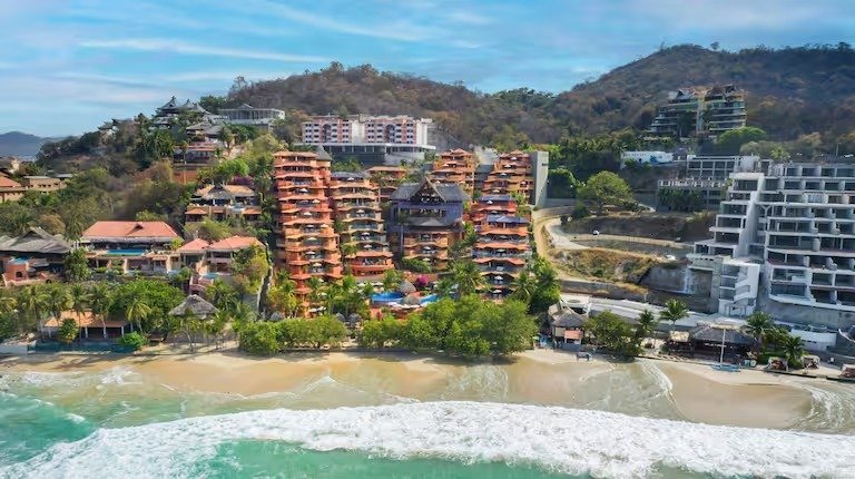 Perched on the exclusive shores of Playa La Ropa in Zihuatanejo, Hilton Grand Vacations Club Zihuatanejo combines authentic Mexican coastal charm with premium resort comfort. The property features an oceanfront infinity pool, lush terraces shaded by palm trees and palapa roofs, and plenty of lounging options both by the pool and on the soft sands. On-site dining includes two restaurants plus bars including a swim-up/poolside bar, and guest services such as concierge, daily housekeeping, and free WiFi help ensure a carefree stay. Suites range from studios up to generous three-bedroom units, all beautifully appointed with either kitchens or partial/full kitchens, private terraces or patios, and some with private plunge pools. Rooms are individually decorated with local touches—think hand-cut tile, textured fabrics, vibrant colors, and indoor-outdoor design influences. Every suite has modern amenities such as air conditioning, flat-screen TVs, safes, and balconies or patios to enjoy views of the ocean or tropical gardens. Located in Playa La Ropa fishing village, you’re steps from one of Zihuatanejo’s most beautiful beaches, and just a short walk from restaurants, boutique shops, and seaside markets. Nearby attractions include exploring Zihuatanejo Bay, launching boat excursions, snorkeling, or enjoying local culture in town. For those interested in venturing further, the Archaeological Museum of the Great Coast, La Madera Beach, and the Municipal Market are all within easy reach. Whether you’re looking to soak up sun, sea, or local flavor, Hilton Grand Vacations Club Zihuatanejo is a wonderful base for your Pacific Coast getaway.