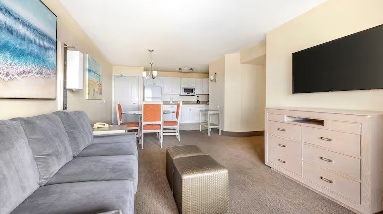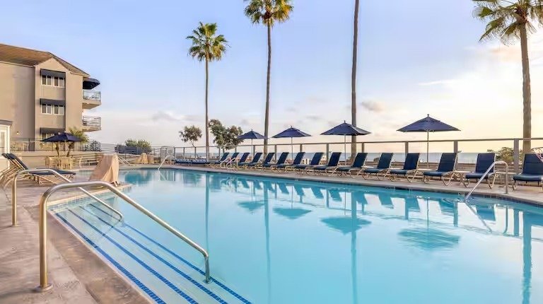 Riviera Beach & Shores, a Hilton Vacation Club is a relaxing beachfront resort nestled on the Southern California coast in Capistrano Beach, just south of Dana Point. With direct access to Capistrano Beach and sweeping coastal views, the resort offers two outdoor pools, hot tubs, a fitness center, and a game room for family-friendly fun. You’ll also find barbecue grills, complimentary beach chairs, umbrellas, and sand toys, plus bicycle rentals and beach gear to help maximize your seaside days. Whether you start your morning with a workout or end your evening with a walk along the shore, the resort blends beachy ease with well-appointed amenities. The accommodations at Riviera Beach & Shores come in studio, one-bedroom, and two-bedroom suites, designed to provide comfort and coastal style. Each unit includes a full- or partial kitchen/kitchenette, living and dining area, private balcony (many with ocean or sunset views), sleeper sofa, and a master bath – some suites even have ocean-view balconies. Modern comforts like air conditioning, cable or flat-screen TVs, free WiFi, and full-sized refrigerators make these suites ideal for couples, families, or groups looking to stay awhile. Situated just a short walk from Dana Point Harbor, Riviera Beach & Shores puts you in easy reach of Southern California’s best coastal attractions. Spend time browsing shops or dining steps away, take whale-watching or boating excursions, stroll to San Clemente Pier, or catch a sunset from one of the nearby state beaches. Golf courses, hiking and biking trails are also close, letting you switch between relaxing beach days and active adventures. Whether you’re here to unwind by the ocean or explore the shoreline, Riviera Beach & Shores offers a convenient, scenic home base.
