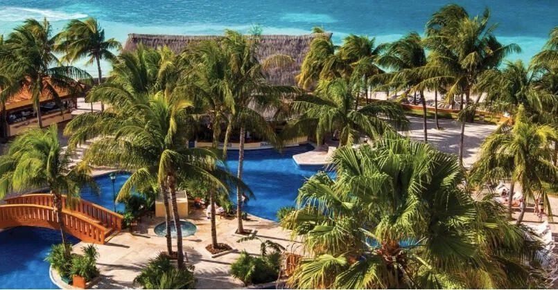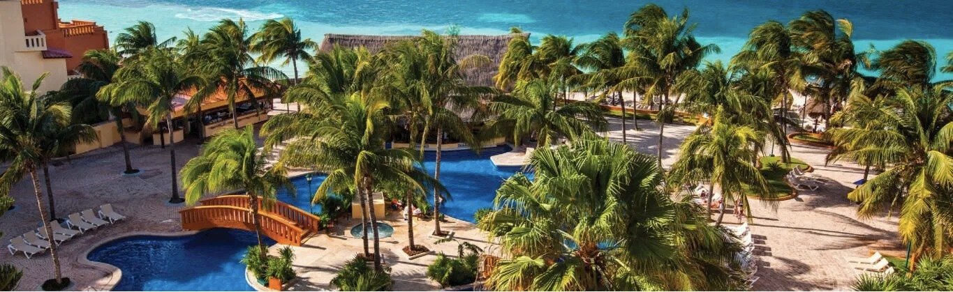 The tropical beauty of this multi-colored palace, you can capture the essence of Old World Mexico. From sun-filled days to endless nights, rest assured, the romance endures. Rooms offer a private oceanfront terrace or balcony overlooking one of Cancun’s most beautiful beaches. Golf, tennis, jogging paths and a health spa are within reach. The hotel is also across the street from the largest shopping area in Cancun.